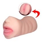 Experimentá el doble placer con este masturbador 2 en 1, que combina boca y vagina realistas para ofrecer sensaciones auténticas y variadas.