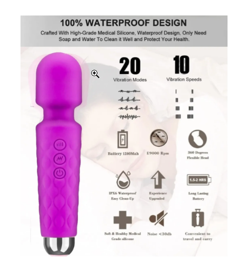 Cuenta con una cabeza flexible que se adapta perfectamente a las curvas del cuerpo, permitiendo una estimulación precisa y profunda. Sus 20 modos de vibración combinados con 10 niveles de intensidad ofrecen una amplia variedad de sensaciones, desde masajes suaves hasta estímulos más intensos.